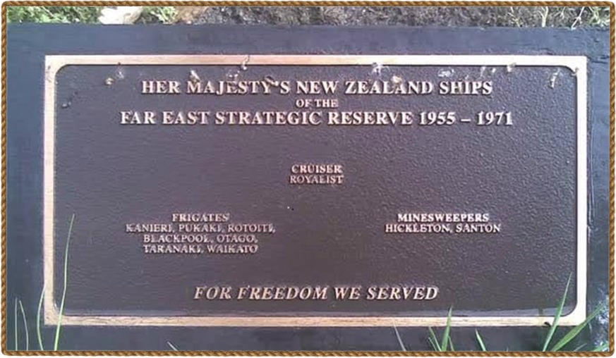 This plaque specifically honours the contribution of New Zealand’s naval forces during the Cold War, particularly their involvement in the Far East Strategic Reserve in Southeast Asia, alongside Australian, British, and other Commonwealth naval forces.